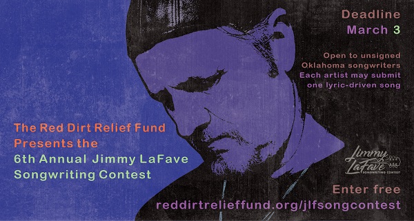 In conjunction with the festival, Red Dirt Relief Fund hosts the Jimmy LaFave Songwriting Contest to showcase new and emerging talent in Oklahoma. The winner of the contest takes home a $500 cash prize and a spot in the Gypsy Café lineup. The contest is free to enter and open to unsigned Oklahoma songwriters. Each artist may submit ONE lyric-driven song in any genre online at https://forms.gle/ZMvf9o8b8KuArZYU6 by March 3rd.
